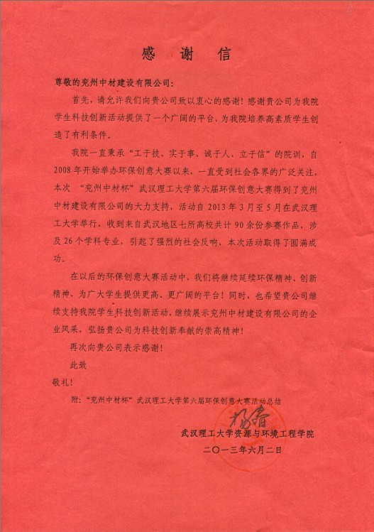 來(lái)自武漢理工大學(xué)的感謝信