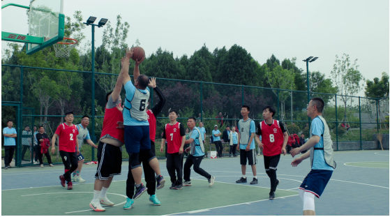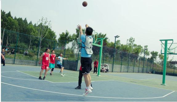 九、籃球賽 他們士氣如虹、激情碰撞 時(shí)進(jìn)時(shí)退,時(shí)緩時(shí)急,時(shí)而三分遠(yuǎn)投,時(shí)而轉(zhuǎn)身跳投 激情與緊張同在,友誼與競(jìng)爭(zhēng)共存