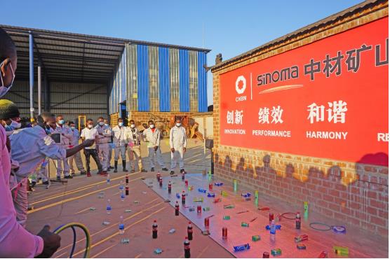舉行以各生產(chǎn)部門為團隊的拔河比賽,圖片為中方員工組成團隊與贊方員工比賽圖。