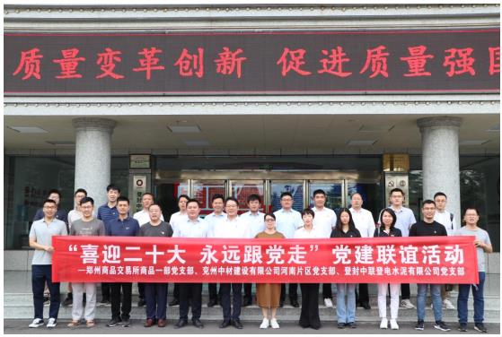 為進(jìn)一步深化黨建聯(lián)建共建,凝聚發(fā)展合力,9月17日上午,河南片區(qū)黨支部代表赴登封中聯(lián)登電水泥有限公司與登封中聯(lián)登電水泥黨支部、鄭州商品交易所商品一部黨支部開展黨建聯(lián)誼活動(dòng)。