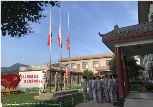 伴隨著雄壯的《義勇軍進行曲》,五星紅旗冉冉升起,隨風飄揚,全體員工齊唱國歌,向國旗行注目禮,目光凝視著迎風飄揚的五星紅旗,心中寄托著對黨無限的熱愛、崇高的敬意以及深情的祝福。